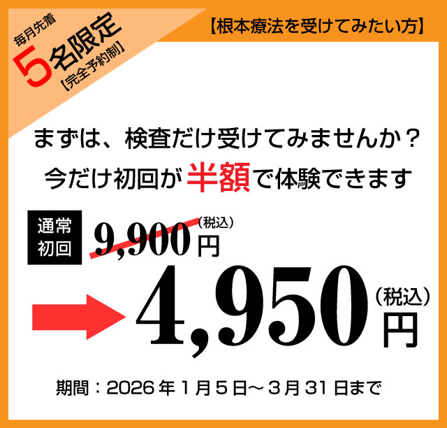 そんな方のために、当院では【初回を通常の半額】でご案内しています。
