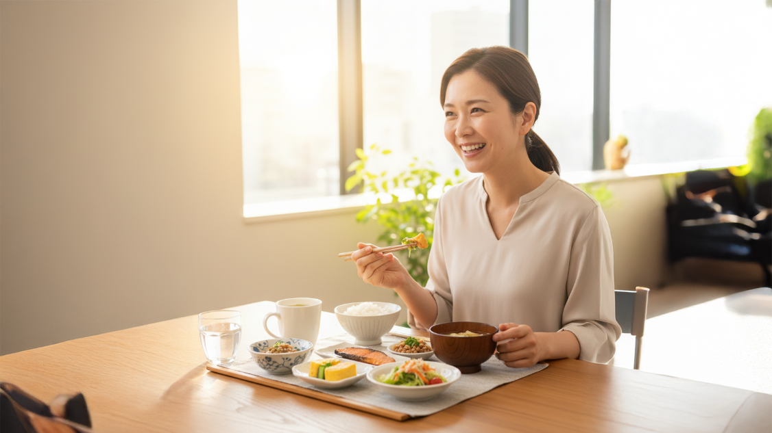 自律神経を整えるには、生活リズムを安定させ、心と体のバランスを保つことが大切です。 特に朝の時間帯はスイッチのオン・オフを整える大事なタイミングです。朝日を浴びたり朝食をとったりすることで体内時計がリセットされ、自律神経のスイッチが自然にオンになります。朝を規則正しく過ごすことで、夜はオフに切り替わりやすくなり、心身も安定しやすくなります。